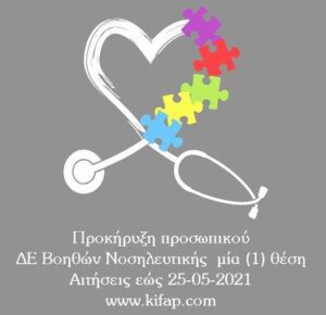 ΠΕΡΙΛΗΨΗ ΠΡΟΚΗΡΥΞΗΣ ΑΡ. ΠΡ. 32/11-05-2021 ΓΙΑ ΤΗΝ ΠΡΟΣΛΗΨΗ ΠΡΟΣΩΠΙΚΟΥ Το Κ.Η.Φ.Α.Π. «Η Μεγαλόχαρη» λειτουργώντας ως δικαιούχος της Πράξης «ΚΕΝΤΡΟ ΔΙΗΜΕΡΕΥΣΗΣ-ΗΜΕΡΗΣΙΑΣ ΦΡΟΝΤΙΔΑΣ ΑμεΑ ΤΟΥ ΚΕΝΤΡΟΥ ΑΥΤΙΣΤΙΚΩΝ ΠΑΙΔΙΩΝ Ν. ΧΑΝΙΩΝ (Κ.Η.Φ.Α.Π.) «Η...